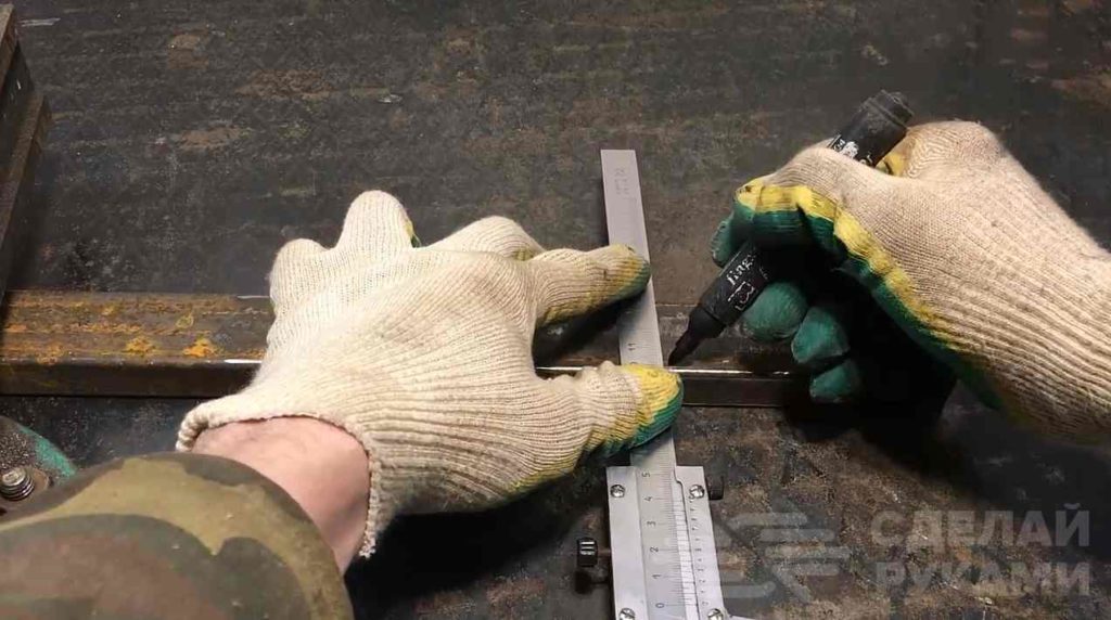 От куска профильной трубы необходимо отрезать подходящую по длине заготовку, вырезав одну полку. Убираем заусенцы и доводим напильником. Из меньшего кусочка трубы вырезаем точно такой же отрезок и также обрабатываем напильником.