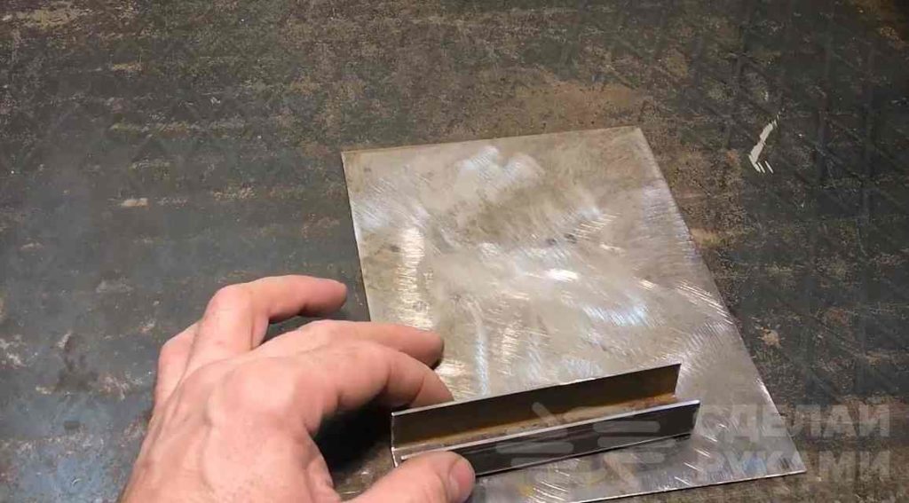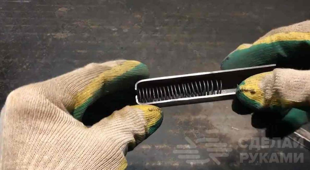 Можно изготовить малый отрезок из листовой стали. Для этого одному краю придаём П-образную форму и срезаем всё лишнее.