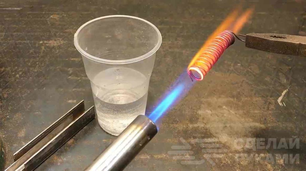 Изготовить пружину можно очень простым способом. Для этого на сверло подходящего диаметра наматываем мягкую проволоку в виде пружины. Далее снимаем получившуюся пружинку и накаляем её горелкой. Резко опускаем в воду и закаливаем, придавая ей жесткость.