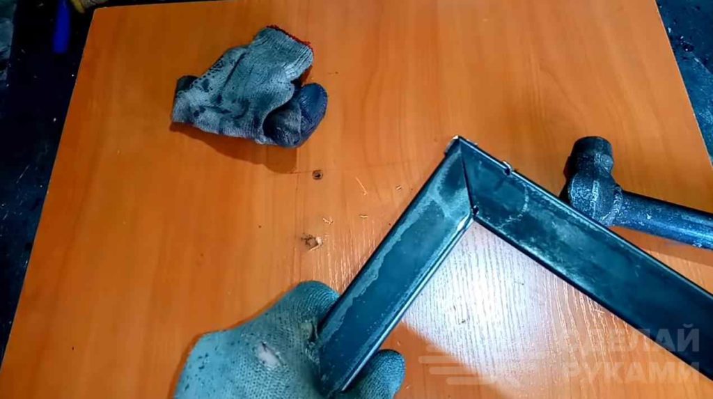 После этого останется только состыковать две профильных трубы между собой «на замок», и затем с помощью молотка просто загнуть выступающие концы.