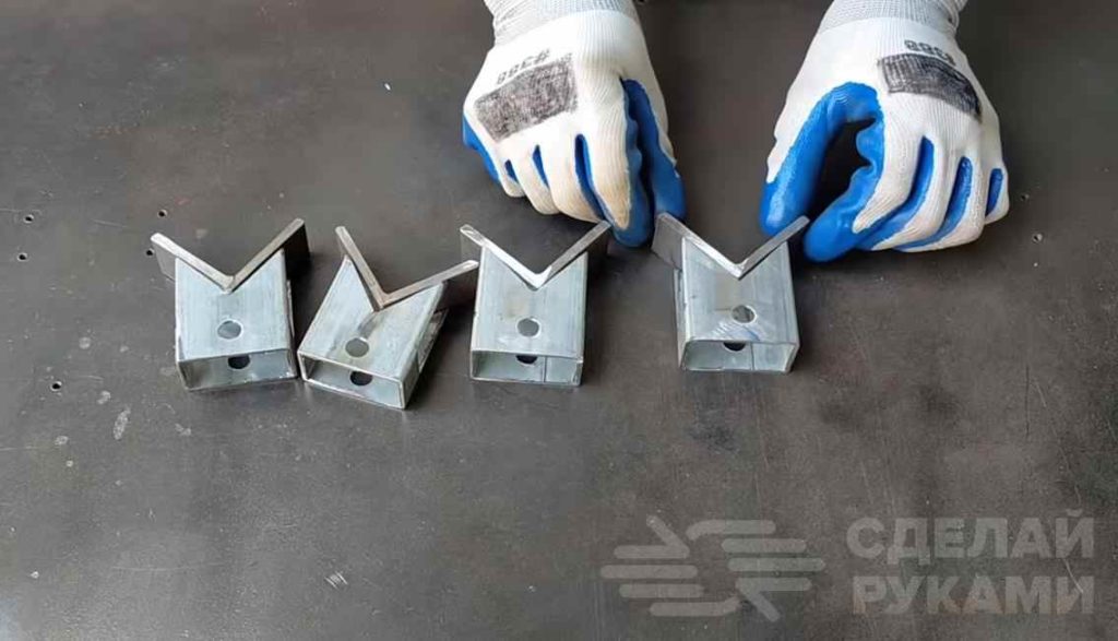 На следующем этапе привариваем куски уголка к заготовкам из профиля. Сварные швы зачищаем болгаркой.